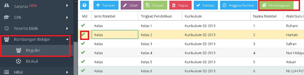 2. klik rombongan belajar